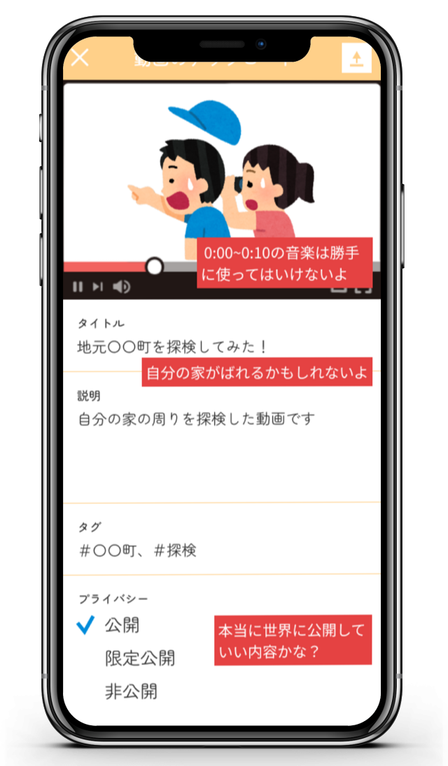 動画投稿や、動画に対するコメントを体験できます。著作権やプライバシーなどに配慮し、情報公開を適切に行う方法や、コメントにおける言葉遣いを学ぶことができます。
